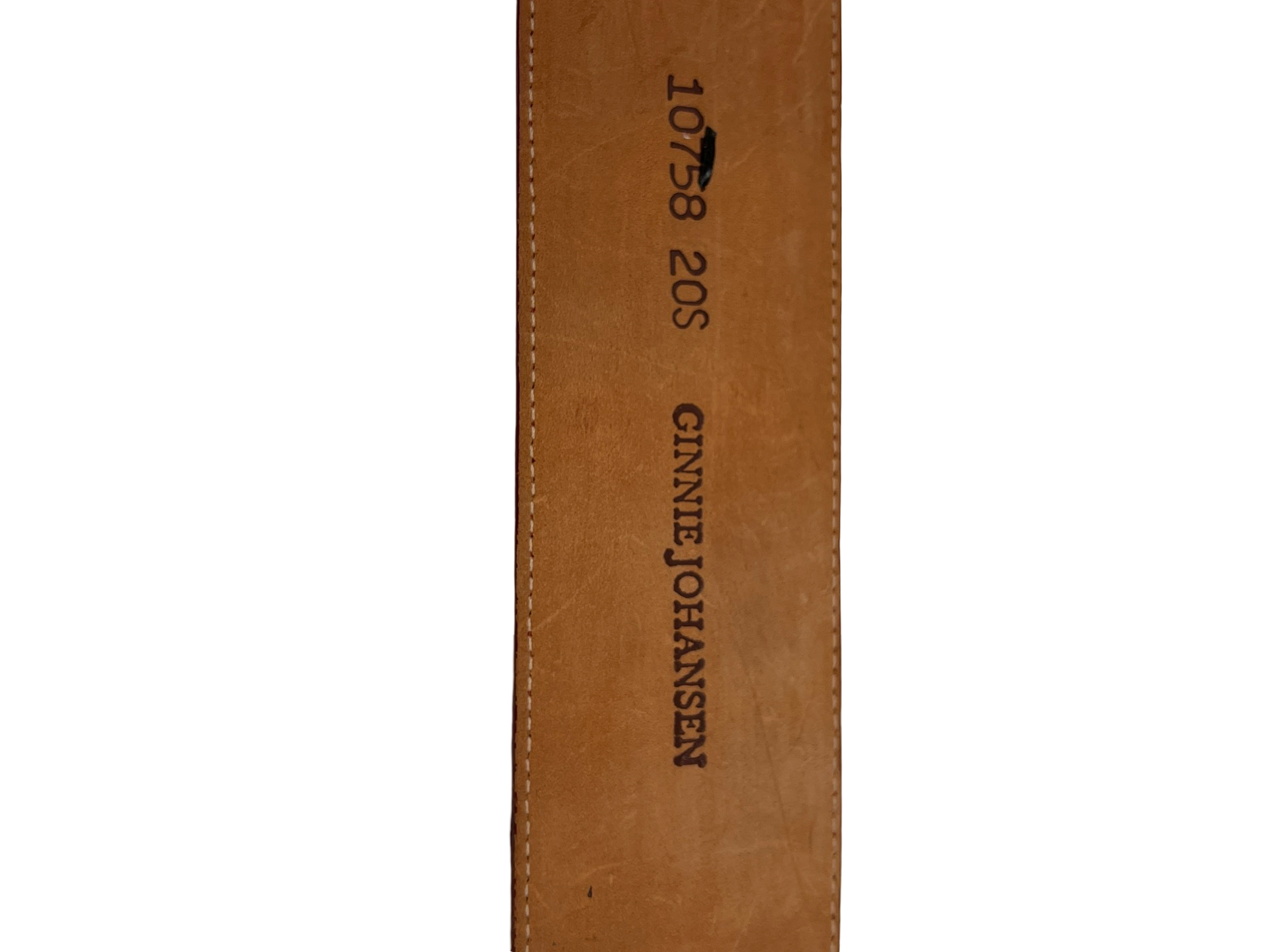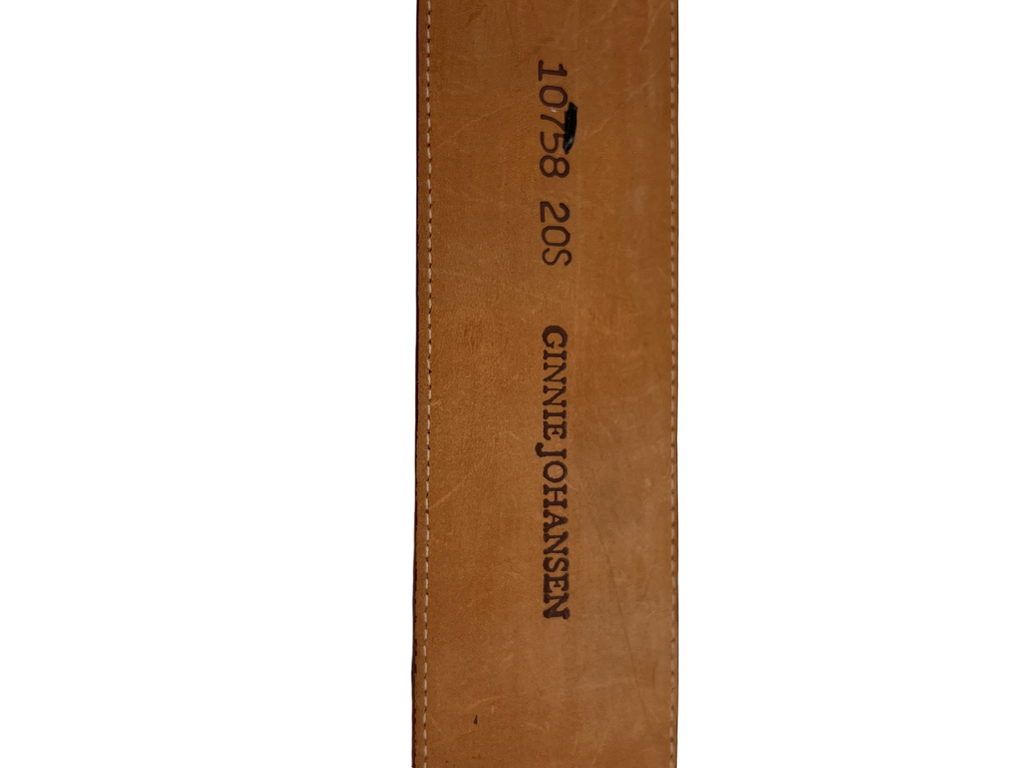Crafted in bold red leather, this Ginnie Johansen belt is finished with a sculptural gold-tone buckle that adds a touch of statement polish. The sleek design is balanced by subtle stitching and refined hardware details, creating a versatile accessory that elevates both denim and tailored looks.