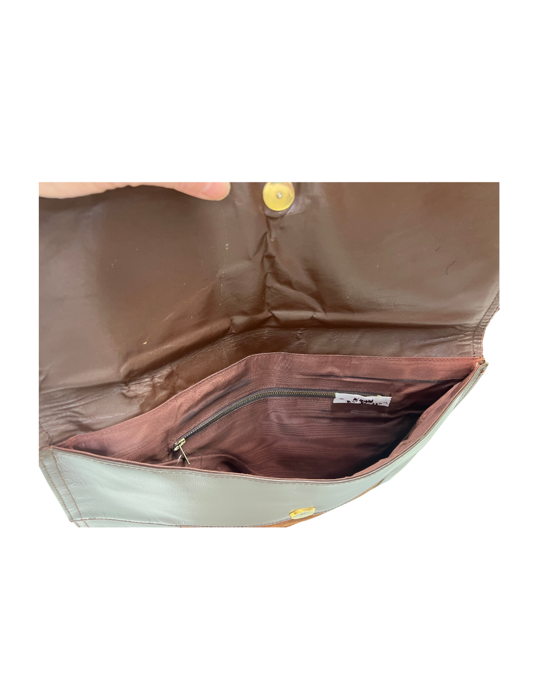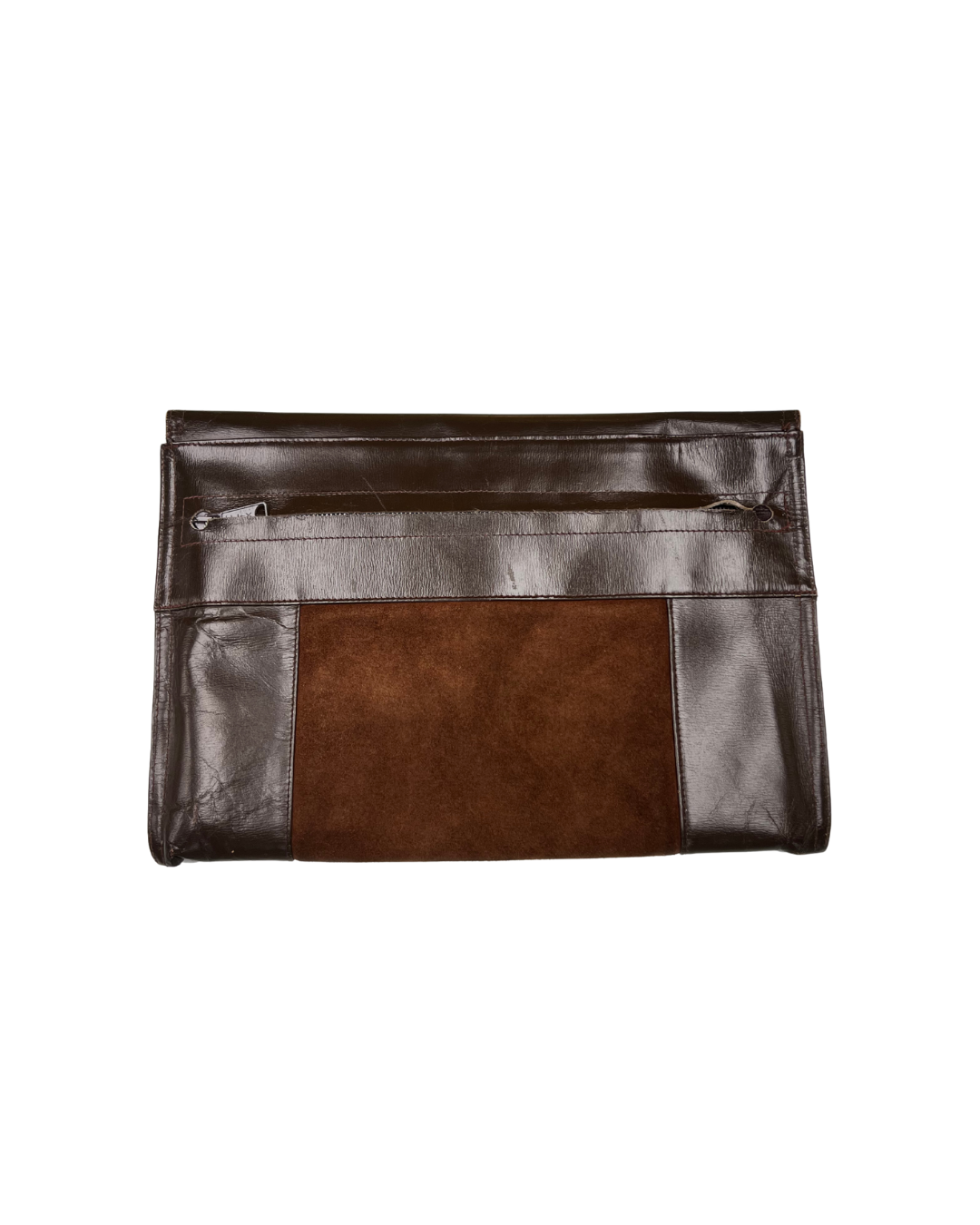 Rich textures and minimalist design come together in this beautifully crafted clutch from La Belle Montréal. Smooth, glossy leather frames a warm suede panel, creating a refined contrast that adds depth and character. Compact yet functional, it's the perfect accessory for both everyday polish and evening sophistication.