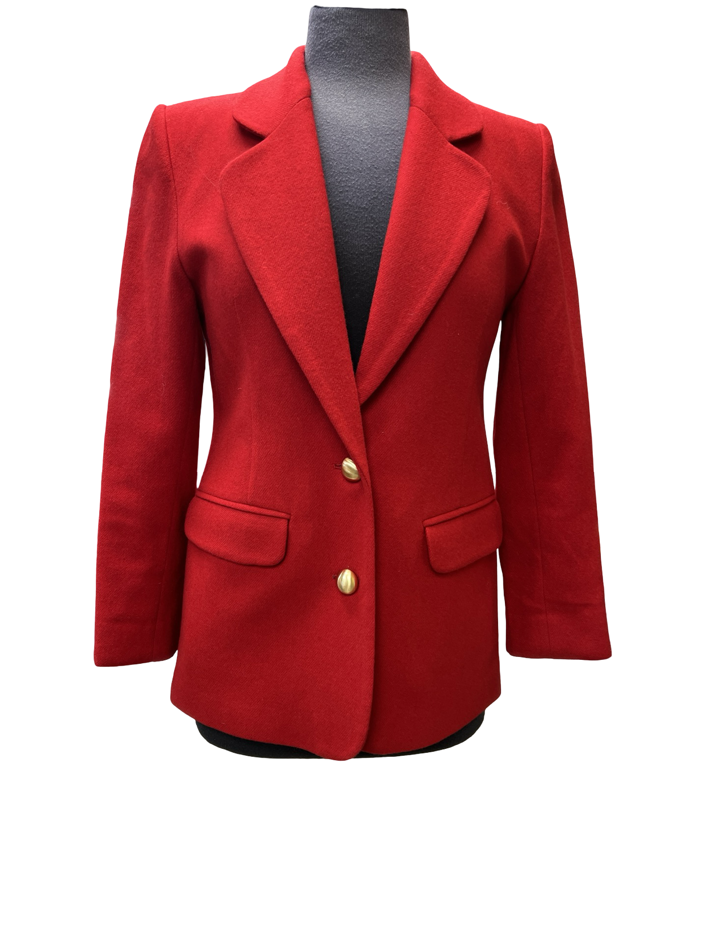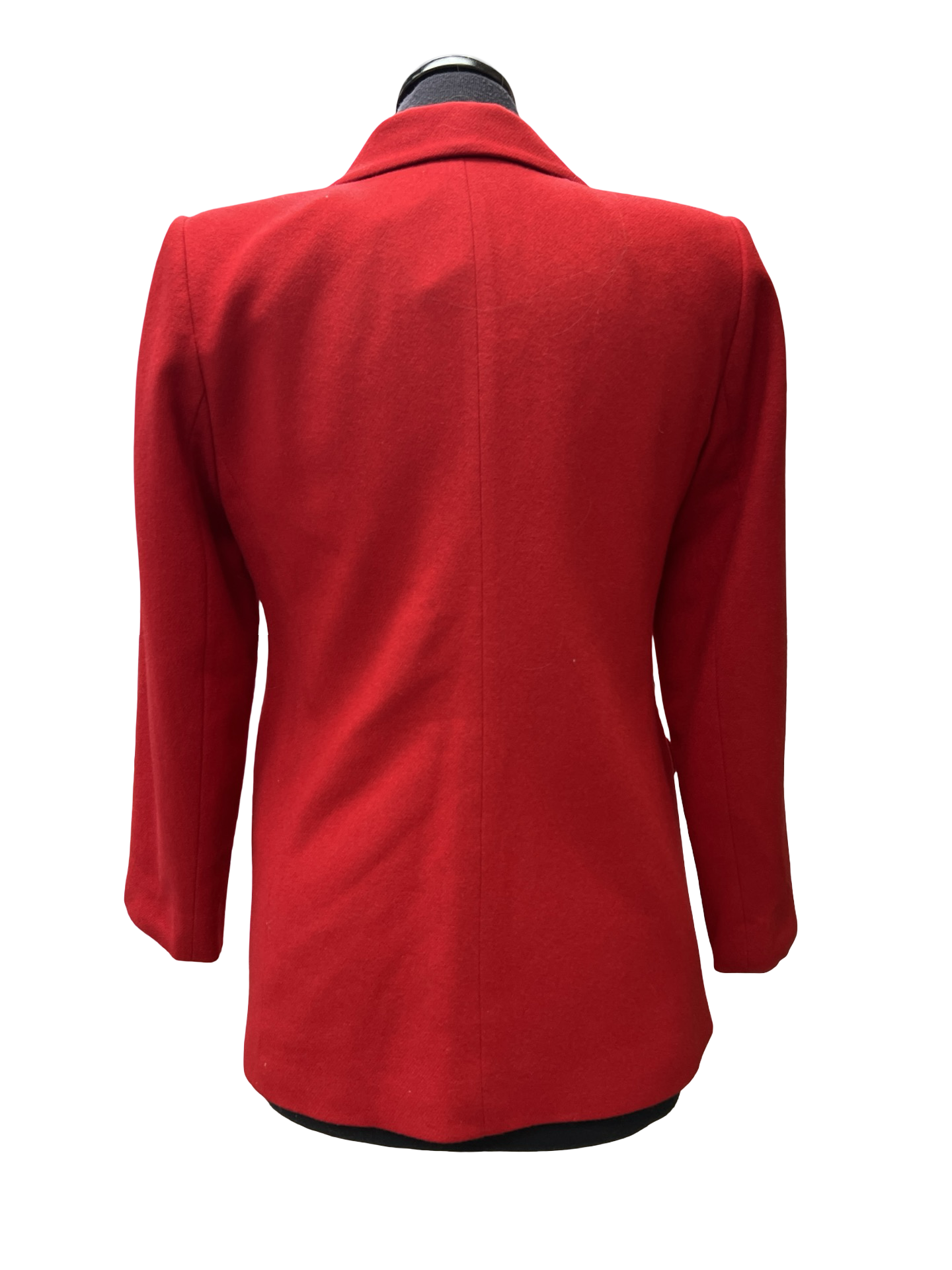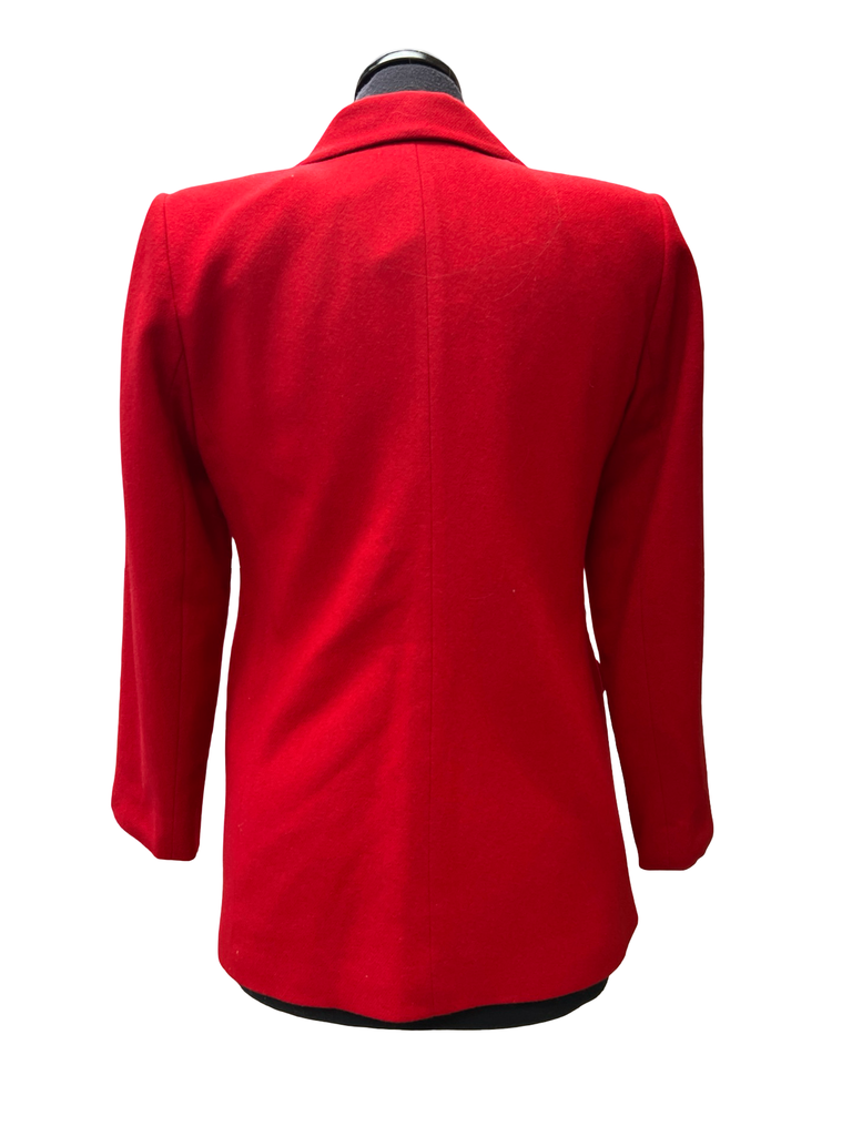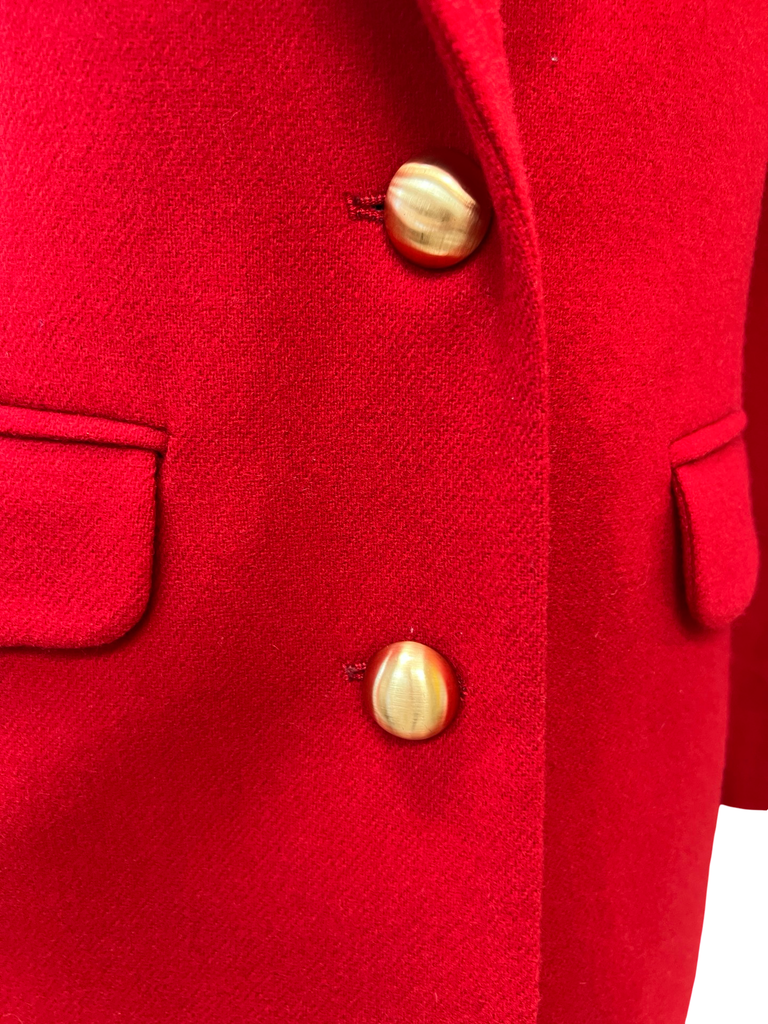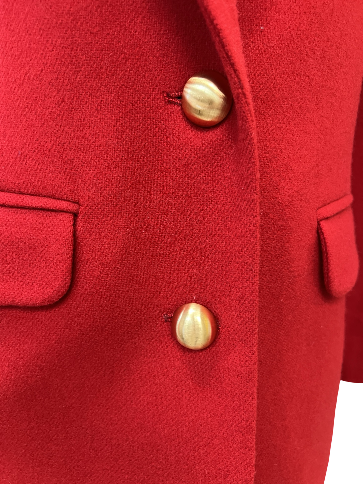 Elevate your outerwear with this Petite Fashions red wool blazer, designed in a tailored silhouette with a sharp lapel and gold-tone buttons. A polished piece that balances timeless structure with standout color.