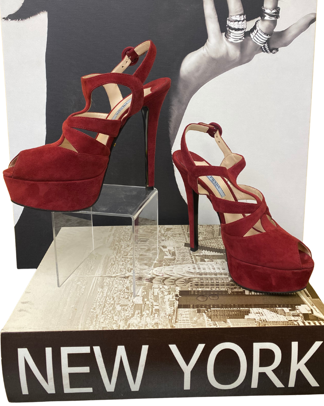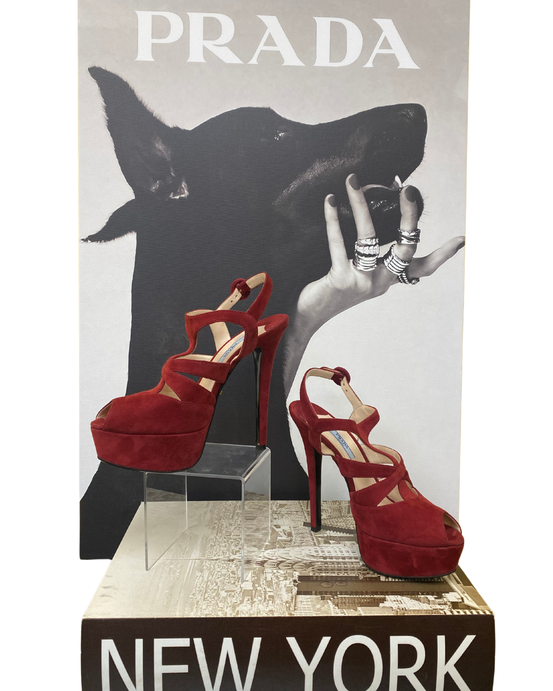 Red Prada Suede Platform Heels